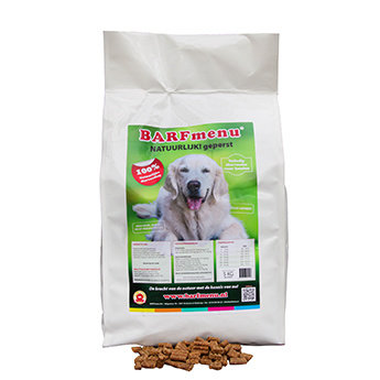 De BARFmenu koudgeperste brok is een 100% natuurlijke voeding, welke geen chemische geur-, kleuren/of smaakstoffen en geen synthetische vitamines bevat.