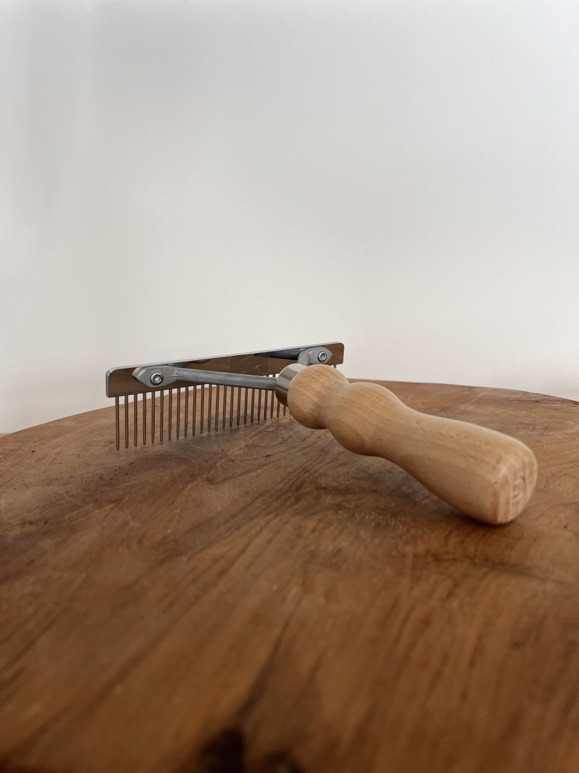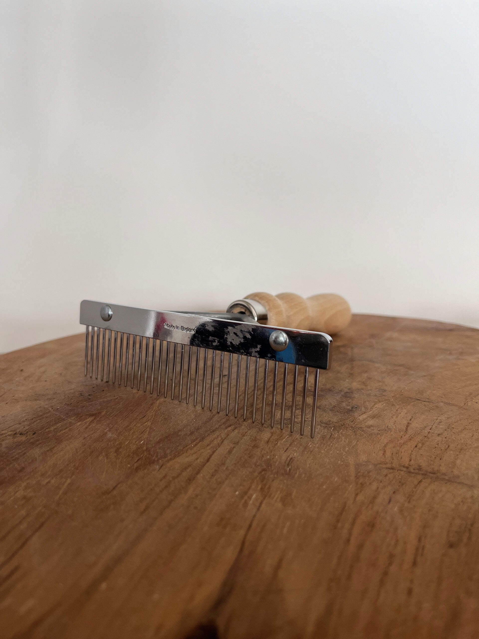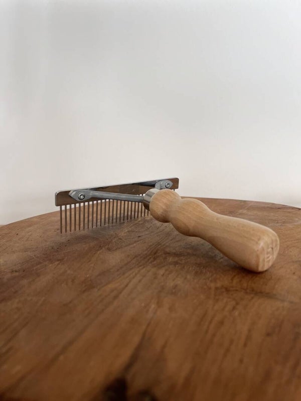 Houd de vacht van jouw hond gezond en klitvrij met deze stevige herderhark. Dankzij het houten handvat ligt de hark comfortabel in de hand en biedt hij extra grip tijdens het kammen.